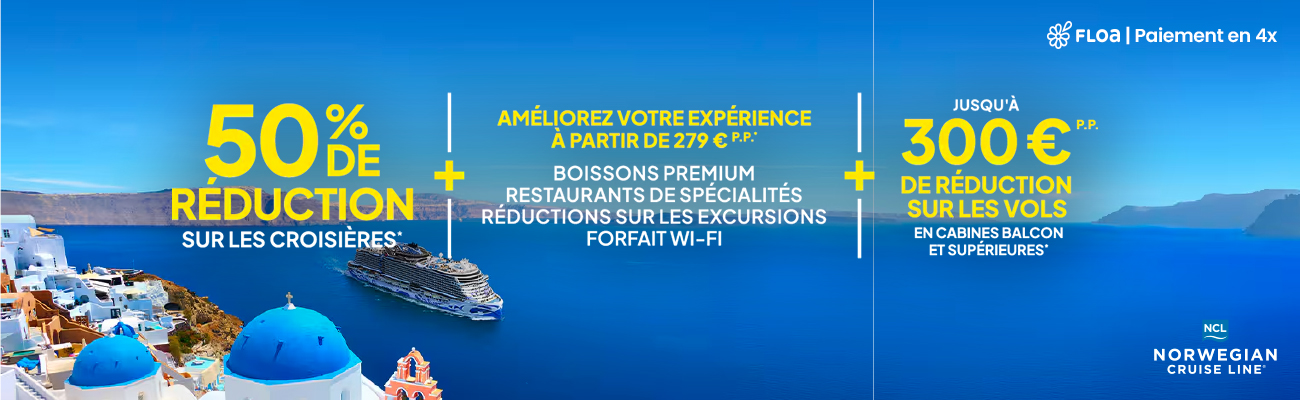 La croisière est un excellent moyen de découvrir plusieurs destinations en un seul voyage. Elle est le mélange parfait entre détente, divertissement à bord et découvertes inédites lors des escales. Les différentes compagnies (MSC, Costa ...) proposent des départs de croisière toute l'année vers la mer méditerranée ou les Caraïbes (consultez ici tous nos